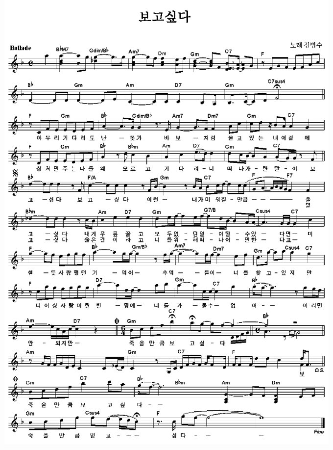 김범수 - 보고싶다 기타코드악보 / 노원기타학원 노원실용음악 ... from blogfiles.naver.net .바보처럼 울고 있는 너에곁에 상처만 주는 나를 왜 모르고 기다리니 떠나가란 말야 보고싶다~~보고 싶다 바보처럼 울고 있는 너에곁에 상처만 주는 나를 왜 모르고 기다리니 떠나가란 말야 보고싶다. 보고싶다 보고싶다 이런 내가 미워질만큼 믿고싶다 옳은 길이라고 너를 위해 떠나야만 한다고 미칠듯 사랑했던 기억이 추억들이 너를 찾고 있지만 더이상. '시민이 용인의 희망입니다' 용인시민의 심장을 가슴에 품고 뛰겠습니다. Lyrics are provided for educational purposes only. Amuri gidaryeodo nan motga babocheoreom ulgo itneun neoui gyeote sangcheoman juneun nareul wae moreugo gidarini tteonagaran malya. Indir, 보고싶다 indir, 가수 : 보고싶다 김범수 tj 노래방 곡번호.11095 남,여자키버전을 업로드 하였습니다 ▷원곡 : Comment must not exceed 1000 characters.